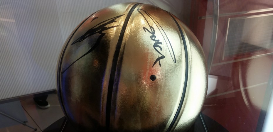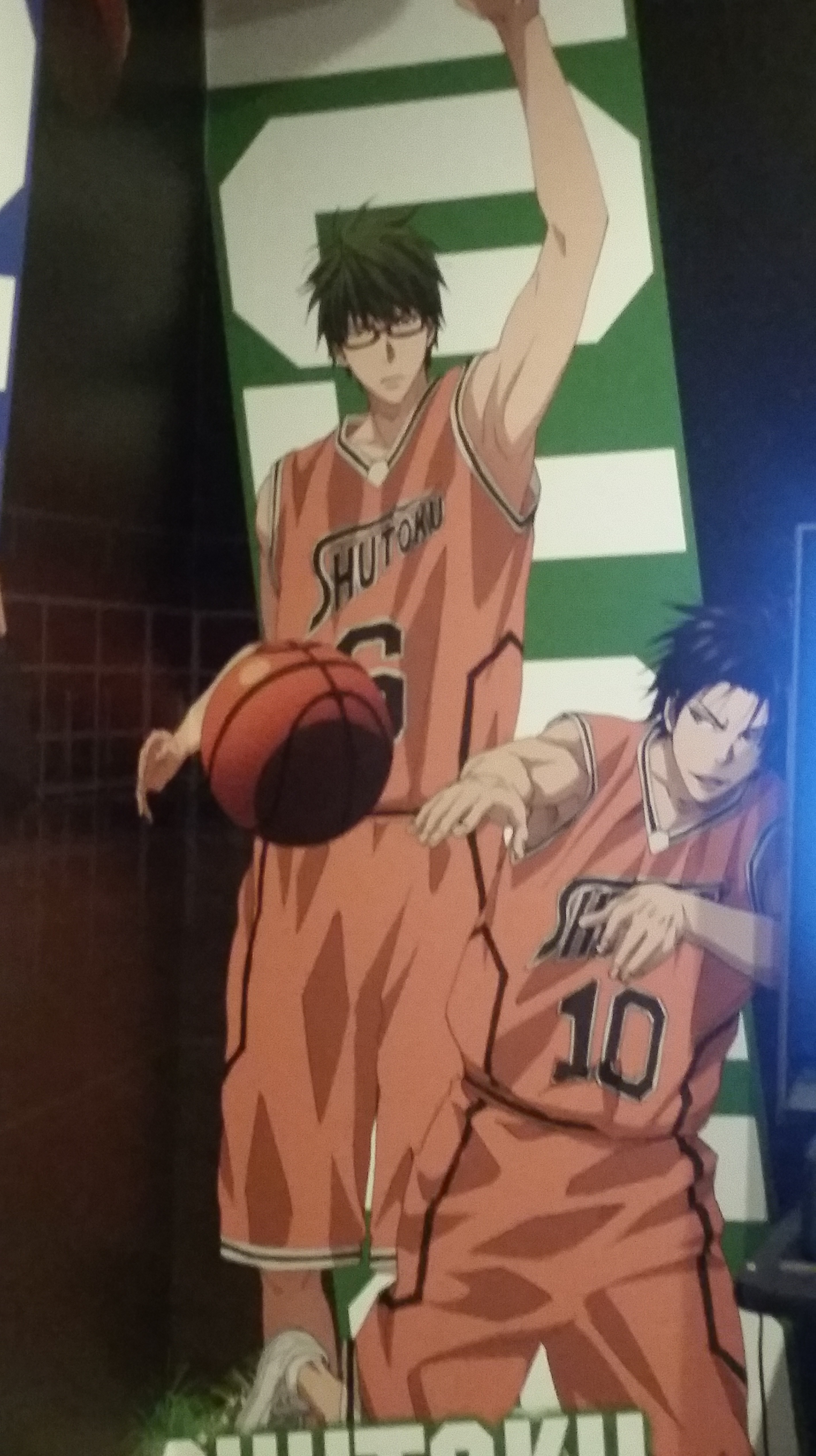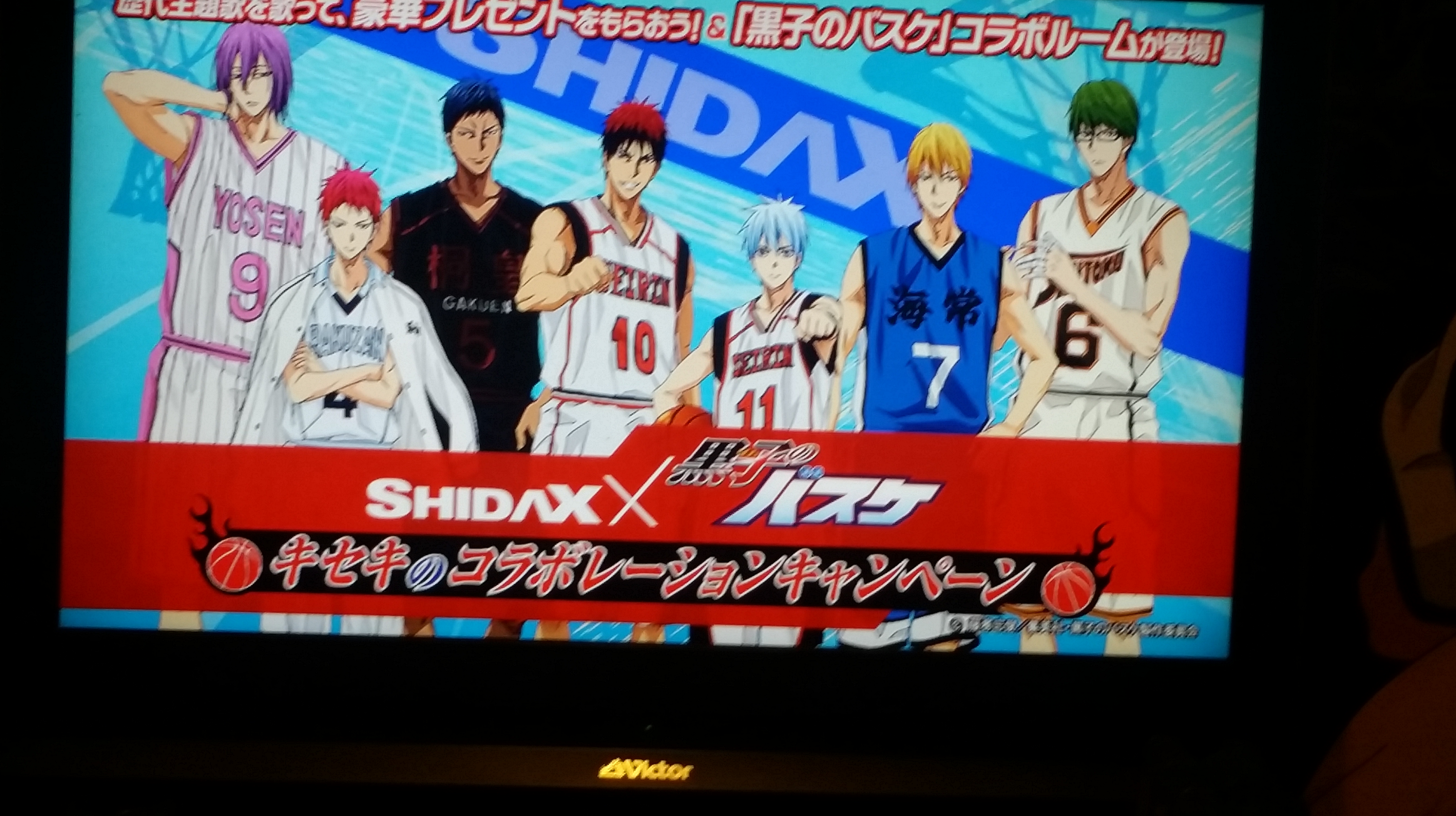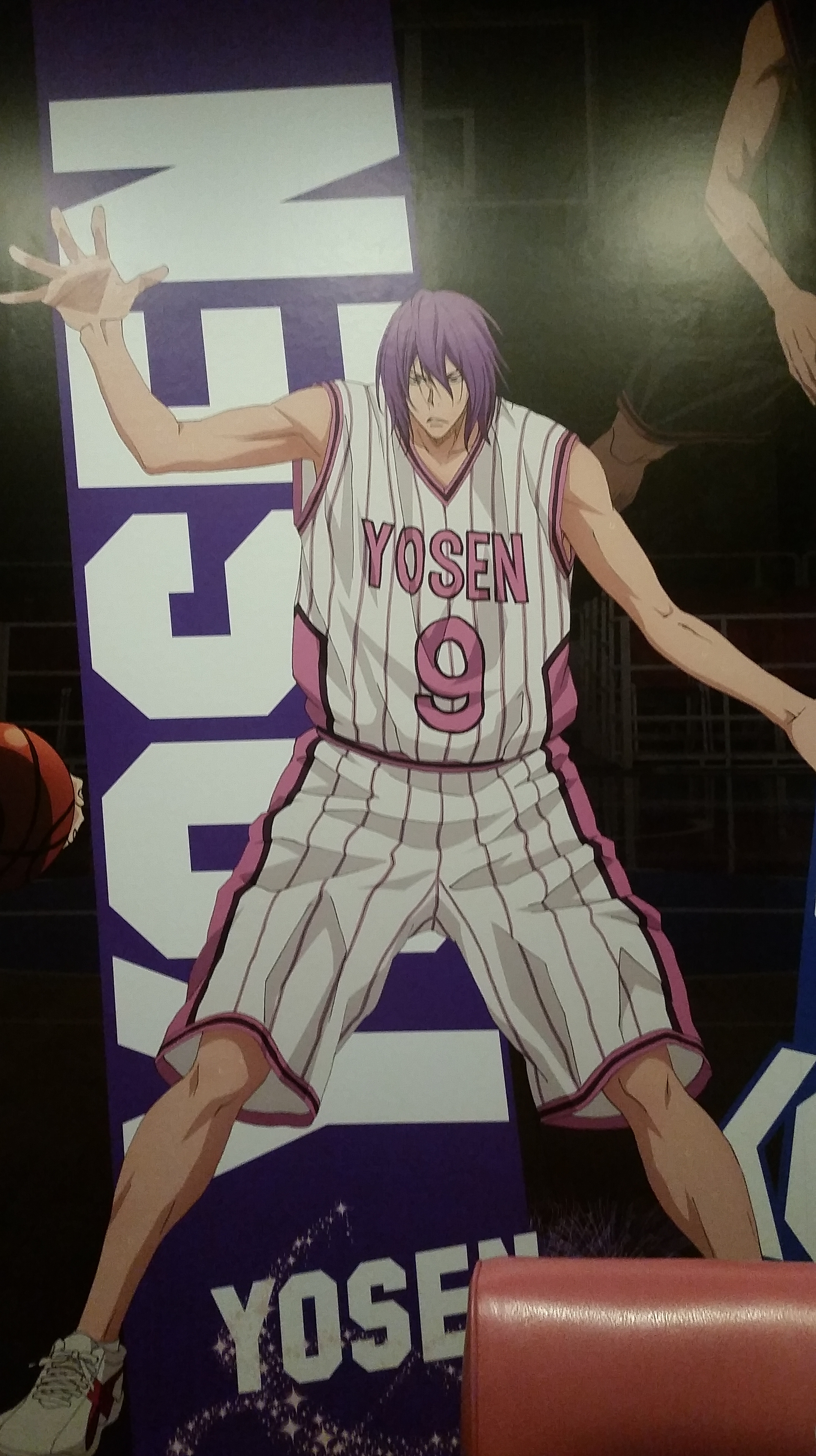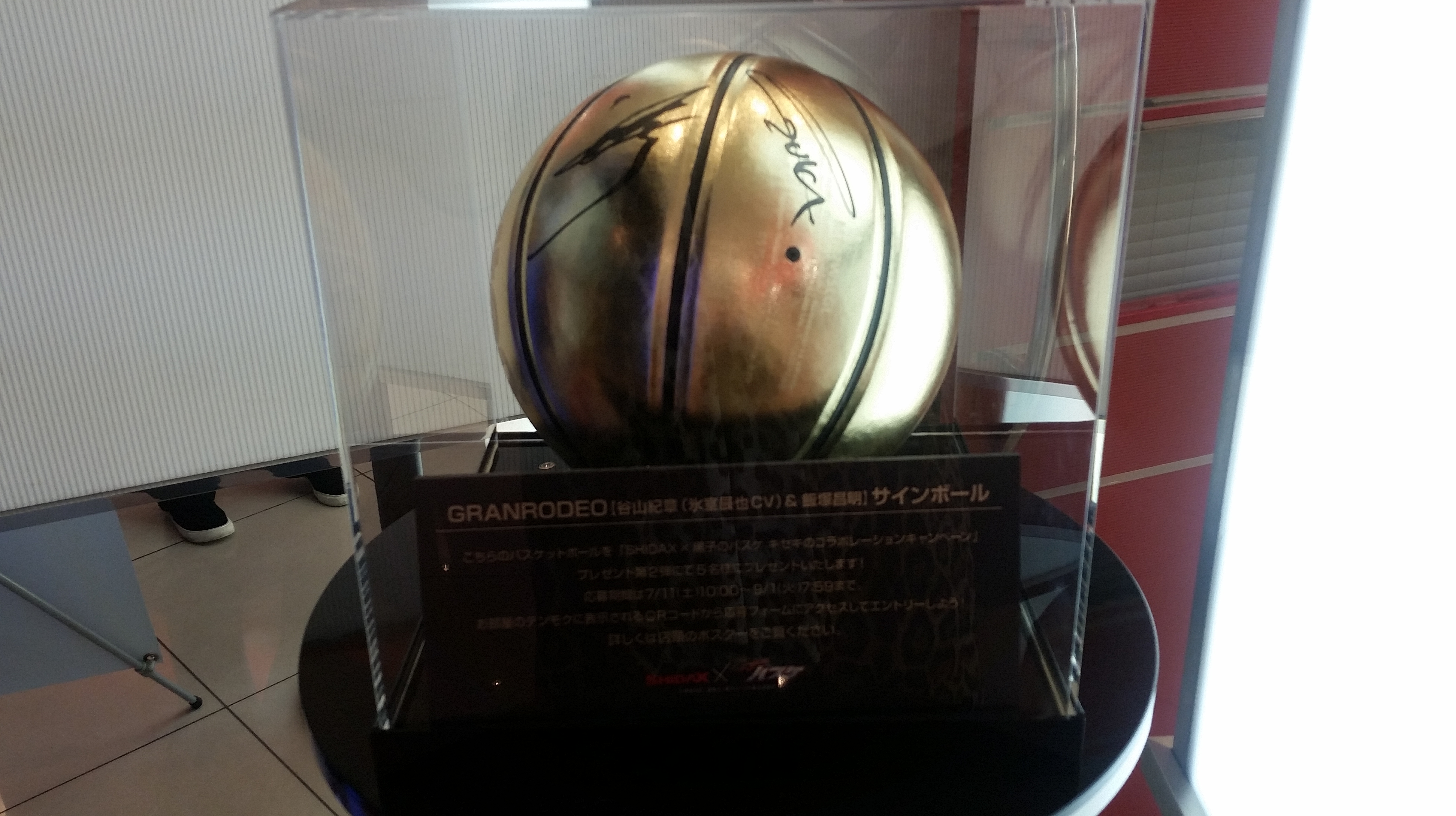 Stopped by the Shidax karaoke bar in Tenjin to try out the Kuroko no Basuke collaboration room. The door and inside were painted with characters from each of the main teams, plus, in the lobby they had one of the basketballs signed by Kiiyan and e-zuka that they’re giving away as prizes. (Click for larger images.)
