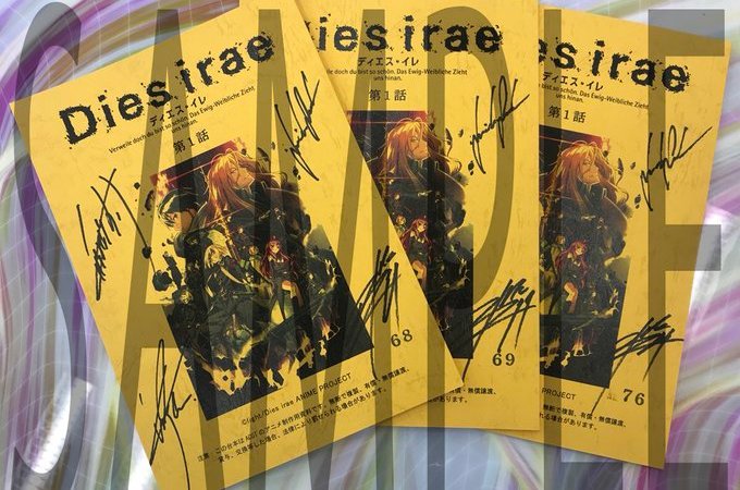 Follow the DMM Pictures Twitter account and retweet this tweet for a chance to win a Dies Irae script signed by Kiiyan, Suwabe Junichi, Toriumi Kousuke and Yasumoto Hiroki. Campaign ends on 7/19/2018.