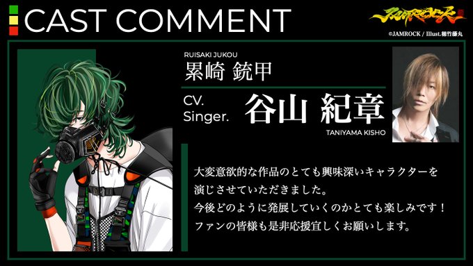 Kiiyan has joined a new reggae-themed character project: JAMROCK. He plays 22 year old military geek Ruisaki Jyukou.