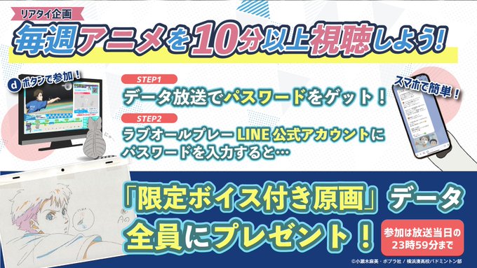 2022-09-26 Kaigai RG Love All Play x LINE x Data Broadcast /LINE×データ放送スペシャルプレゼント🎁\#ラブオールプレー を10分以上視聴してプレゼントをもらおう❣️第24話の限定ボイスは📢#花江夏樹 さん演じる #水嶋亮 と#谷山紀章 さん演じる #遊佐賢人 です!本編では聴けないふたりからのメッセージ💕リアタイしてゲットして下さいね! pic.twitter.com/nWMiUVk65v— ラブオールプレー【アニメ公式】 (@loveallplay2022) September 24, 2022 Share this: Click to email a link to a friend (Opens in new window) Email Click to share on X (Opens in new window) X Click to share on Facebook (Opens in new window) Facebook Like Loading... Related